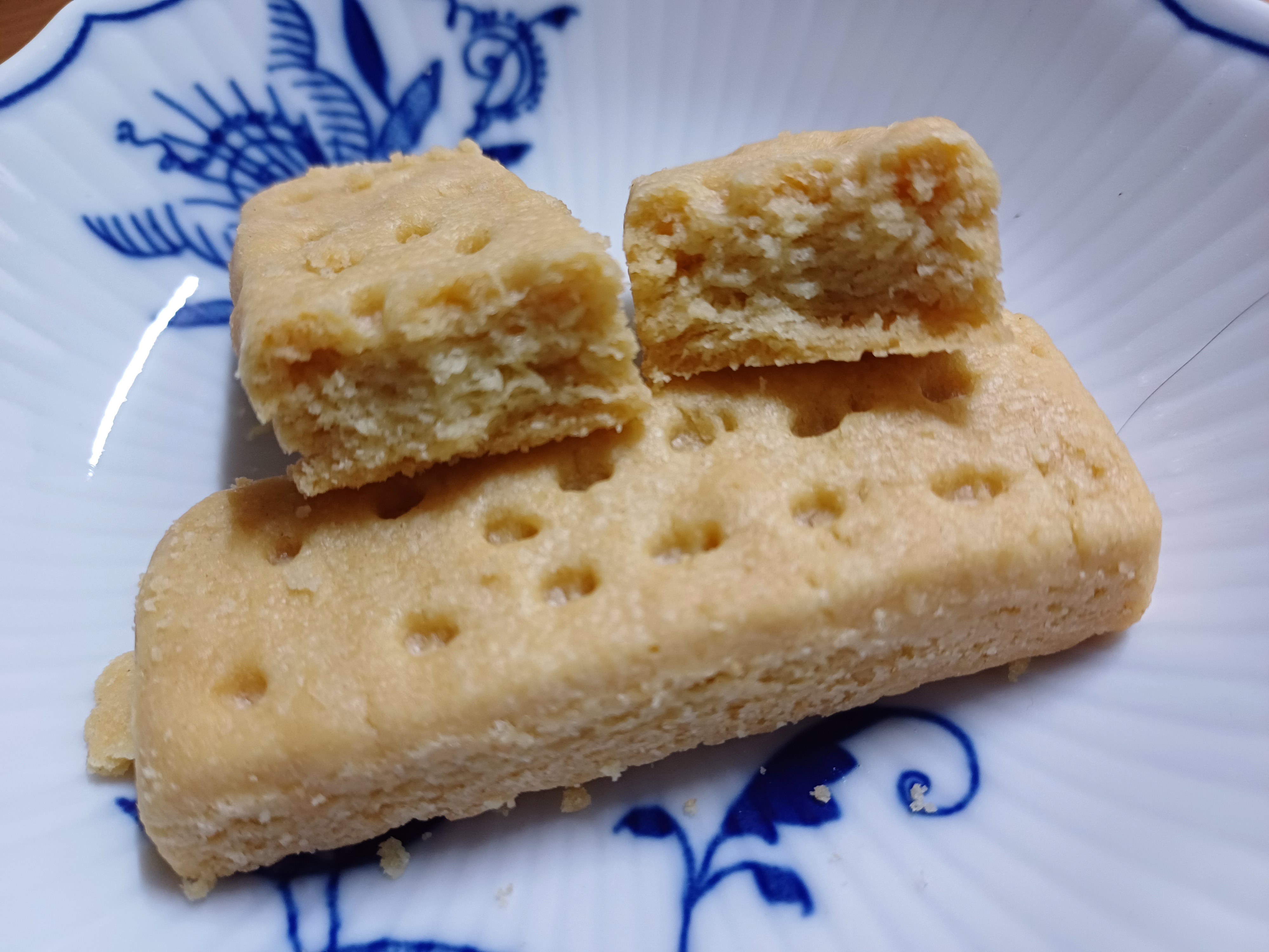 고소한 버터향과 바삭바삭한 구움과자 향이 매력적입니다. 단맛은 은은한 편이지만 씹을수록 달콤함이 가득 느껴지고 드문드문 짭짤한 맛도 납니다. 투박한 매력이 뿜뿜하고 버터와 밀가루 함량이 높은 편이라 지방+탄수화물에서 오는 포만감도 상당한 편입니다.