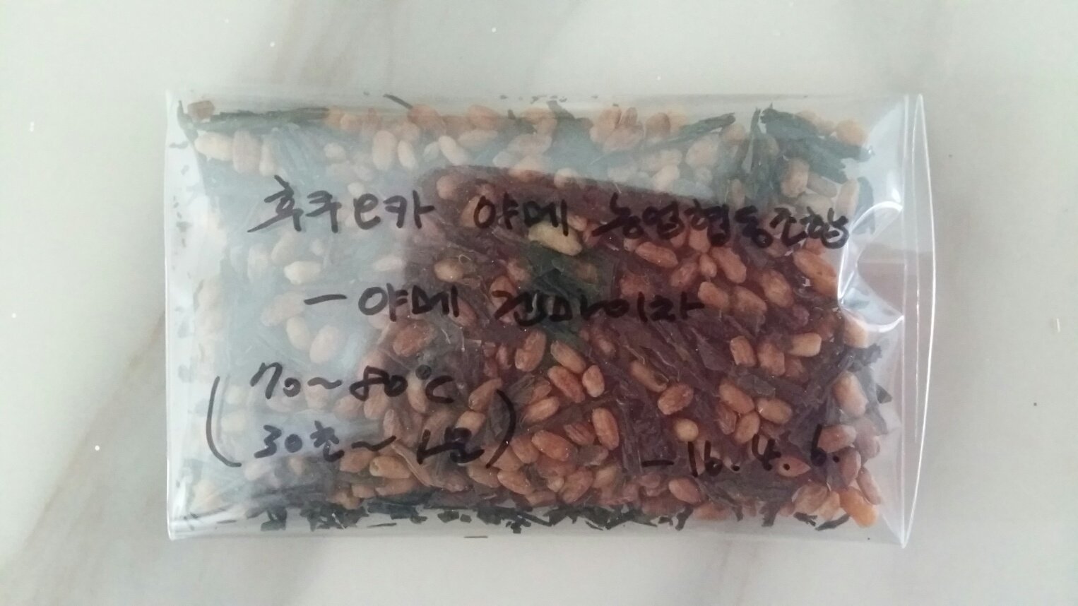 건엽에선 말린 미역에서 날 법한 비릿한 해조류 냄새가 올라옵니다. 감기 때문에 후각도 미각도 정상이 아니긴 하지만 비린향이 유독 심하게 느껴져서 슬펐습니다. 개인적으로 불호하는 향이거든요. 현미 알갱이가 잔뜩 들어 있는 걸 보면 고소향 향도 날법한데 코가 고소한 향을 완벽하게 필터링하고 있나 봅니다.