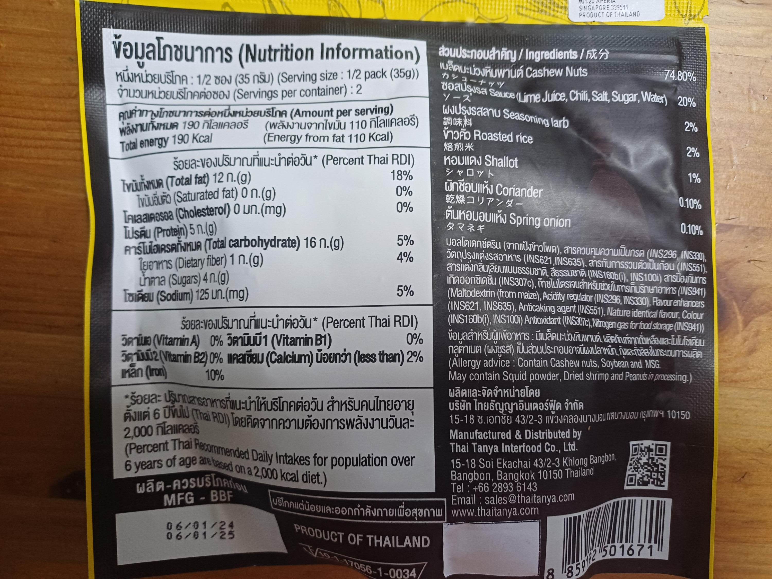 개인적으로 엄~~~청나게 좋아하는 똠얌맛 캐슈넛 입니다. 똠얌 소스를 바른 견과류나 말린 생선 제품은 셀 수 없이 많지만 개인적으로 이 브랜드에서 나오는 제품을 가장 좋아합니다. Tops에서 판매하고 Tops 갔는데 없다면 제가 매대에 나와 있는 거 다 쓸어가서 없는 겁니다.