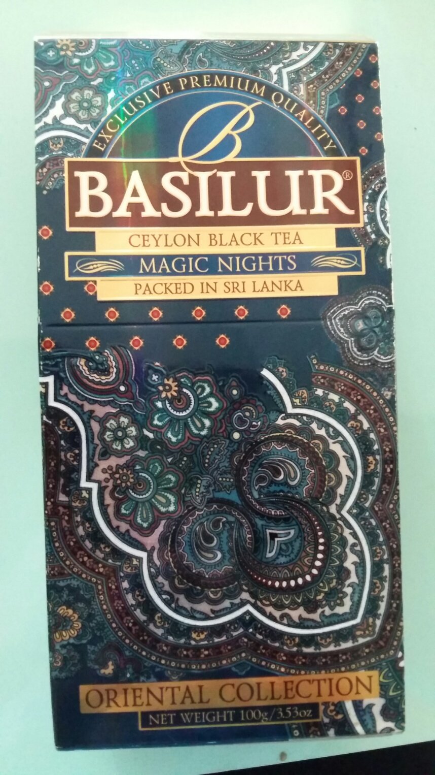 베질루르의 오리엔탈 컬렉션 매직 나이트 카톤 버전입니다.(리필 버전이라고도 함) 종이 상자 안에 알루미늄 지퍼백으로 포장된 찻잎이 들어 있습니다. 틴을 모으는 게 아니라면 카톤 버전을 사는 게 가격적인 측면에서 훨씬 이득입니다. 티백 버전은 편하긴 하지만 맛이 좀 떨어지는 경우가 있어서 개인적으론 티백보단 잎차, 특히 카톤 버전을 선호합니다. 단점이라면 국내에선 사기 힘들다는 거....?