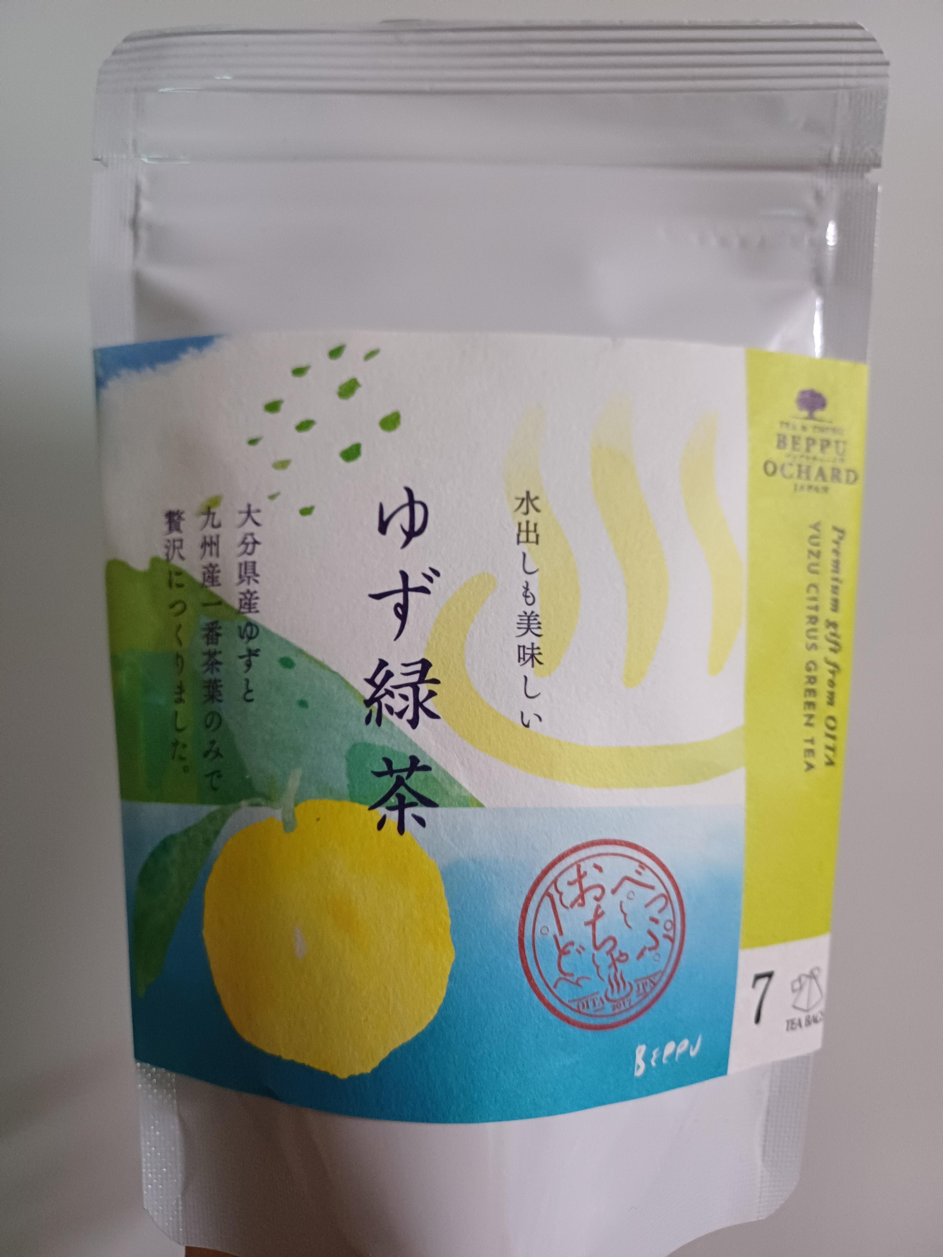 벳푸 오차드의 유자 녹차입니다. 로컬 재료를 사용한(오이타를 기준으로 넓게는 규슈 지역까지) 벳푸시의 관광 기념품으로 제조는 마루니야라고 하는 벳푸의 로컬 찻집에서 맡고 있습니다.