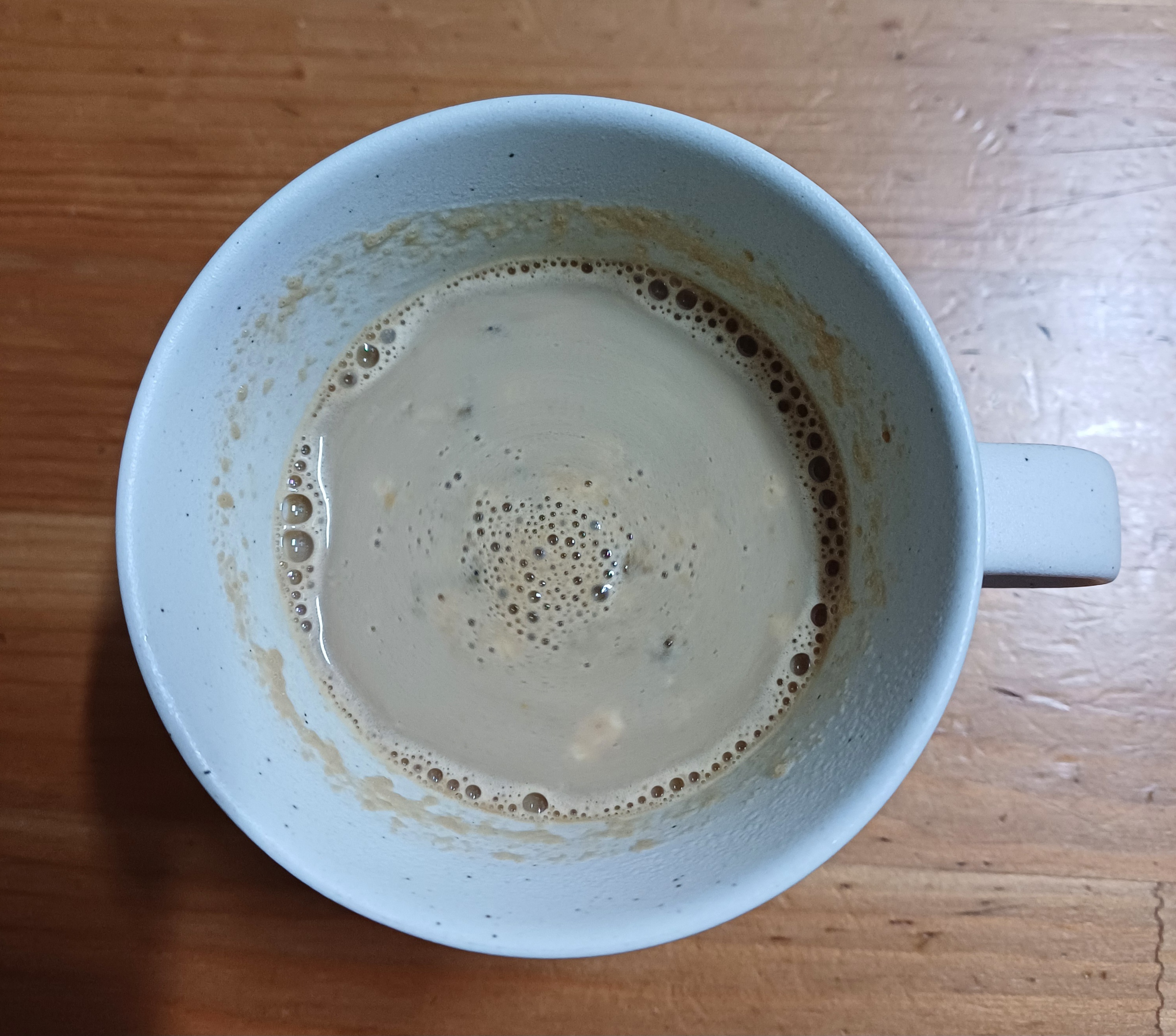 스테비아 + 단백질 파우더를 넣은 커피믹스입니다. 1포, 90ml, 일반 커피 믹스에 비해 분유냄새가 좀 더 납니다. 크리머 파트의 뭉침이 좀 있는 편입니다. 스테비아 커피 믹스에 비해 자연스러움이 살짝 덜 하긴 하지만 티젠처럼 심하게 이상하진 않습니다. 커피와 단맛을 잇는 이음새인 크리머가 좀 밍밍하면서도 텁텁한 느낌이란 게 단점이지만 텁텁한 맛만 뺀다면 스테비아 커피 믹스와 그럭저럭 비슷한 향과 맛을 보여줍니다. 충분히 저어줘도 컵바닥에 고운 진흙 마냥 가라앉는 입자들이 있는 걸 보면 텁텁한 맛의 원흉은 단백질 파우더인 것 같습니다. 커피잔에 타 마시는 커피믹스 형태보단 쉐이커 통에 넣고 흔들어 마시는 보충제 형태에 더 적합한 물성이라 마실 때마다 계속 저어주거나 힘차게 저은 뒤 원샷을 해야 합니다. 이래저래 마시기 불편합니다. 맛이 이상하진 않은데 마시기 너무 불편합니다.