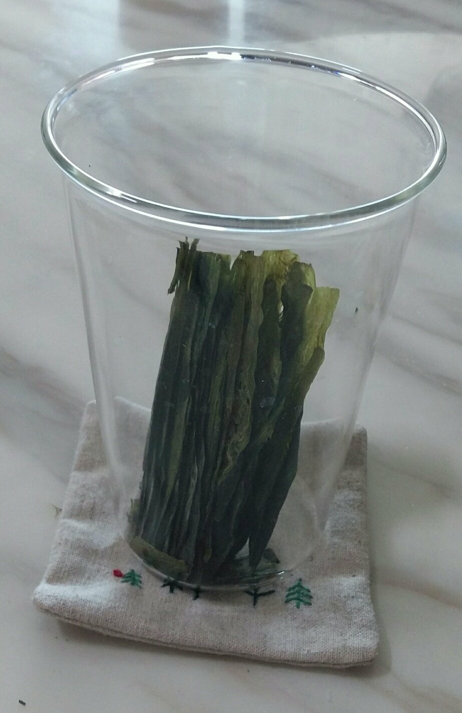 XXX님에게 받았던 서호용정에서 고소한 콩가루 내가 뿜어져 나왔다면 이쪽은 약하고 여린 꼬쑨내가 납니다. 중국인들이 마시는 것처럼 긴 유리컵에 우려 보기로 했습니다. 티비브로의 권장법대로(80도, 1~5분) 우려서 마셨습니다.
