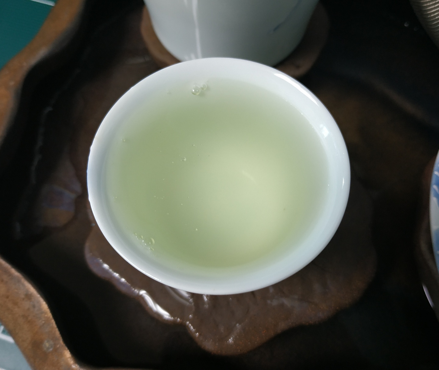 찻물은 달고 매끈매끈하면서 감칠맛이 있습니다. 상쾌하거나 개운한 느낌보단 입에 촥촥 감기는 맛입니다. 일본 녹차랑은 완전 다른 맛이지만 입을 당기는 감칠맛이 있는 편입니다. 입안을 보들보들하면서도 뽀송뽀송하게 감싸는 느낌입니다. 여전히 과일계열의 단향과 고소한 향이 대세이긴 하지만 아주 언뜻 희미한 꽃향이 지나가기도 합니다.