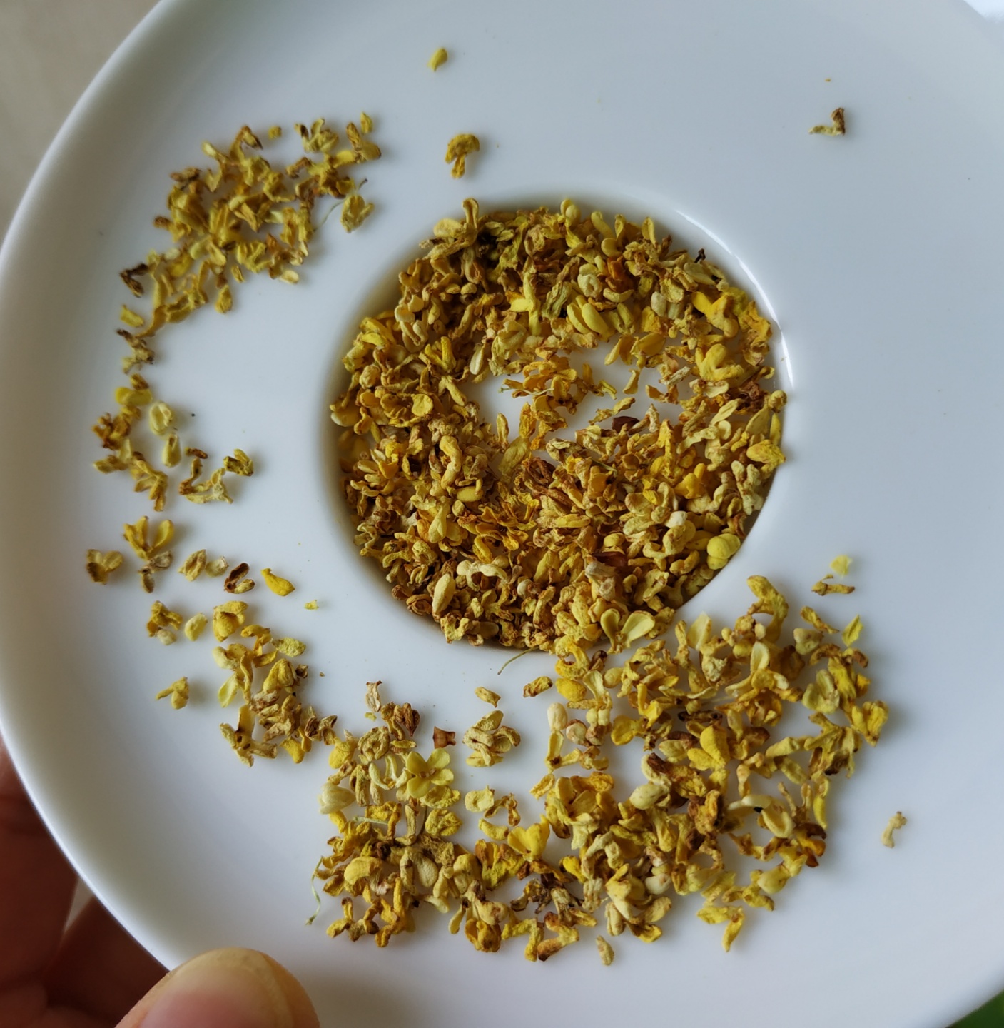 조그만 꽃에서 아주아주 진하고 달콤한 향기가 납니다. 살짝 느끼한(?) 바닐라나 크림 느낌의 달달함이 약간 있는데다 너무 많이 쓰는 경우 일단 향이 너무 강하고 약간 불쾌할 수 있는 싸한 맛이 나기 때문에 양을 잘 조절해서 이용하는 것이 중요합니다. 워낙 향이 강하다보니 20g 정도만 있어도 두고두고 먹고 마시고 냄새 맡을 수(...) 있습니다. 개인적으로 계화향을 무지무지 좋아하기 때문에 차로 마시거나(단독 or 블렌딩) 디저트에 쓰기도 하고 그냥 옆에 덜어놓고서 킁카킁카거리기도 합니다. 음 스멜~