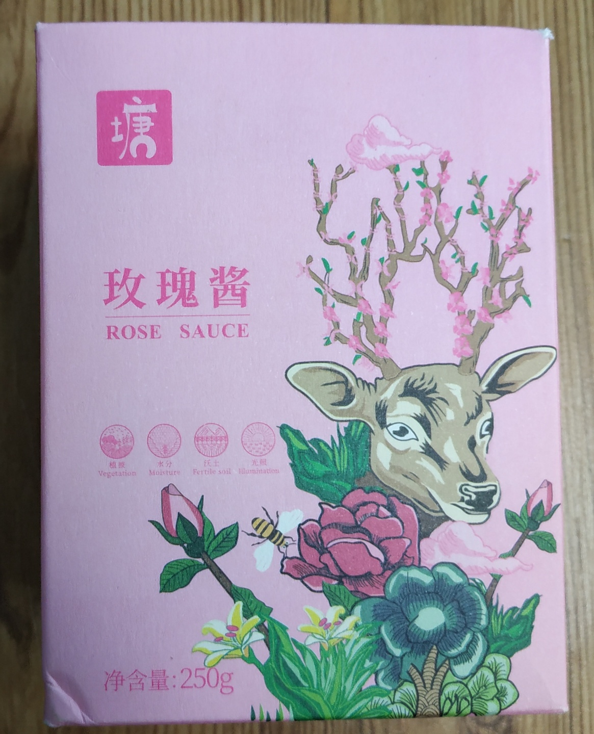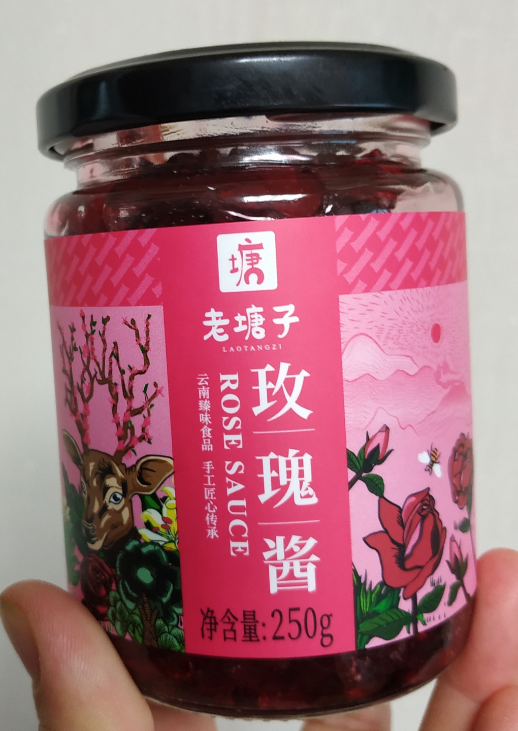 중국 운남의 브랜드 노당자의 주력 상품(?)인 장미 소스입니다. 장미로 유명한 지역답게 장미꽃잎에 설탕을 넣어서 만든 장미 소스(장미 잼)가 지역 특산품 중 하나입니다. 특산품인 만큼 굉장히 많은 업체에서 장미 소스를 만들어서 팔고 있지만 장미꽃 함량이 극히 낮고 색소+향료+응고제+설탕 등으로 범벅한 저가 상품들도 많으니 신중하게 고르시는 것이 좋습니다.