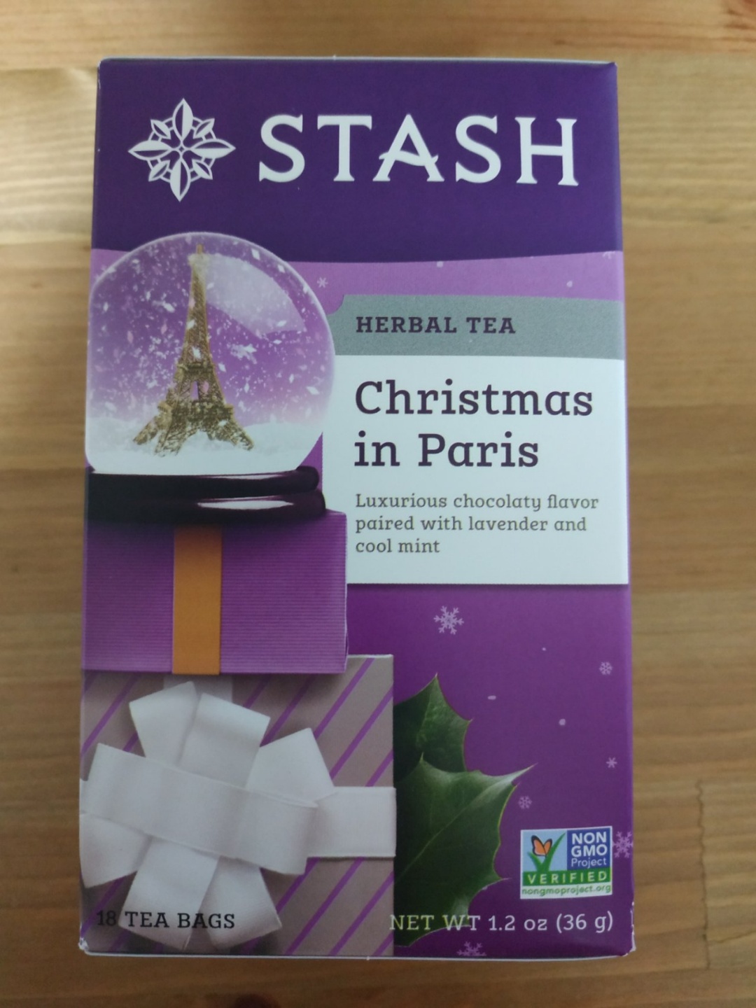 라벤더는 개성이 강한 허브라서 잘 쓰면 괜찮지만 못 쓰면 화장실 방향제 옆에서 차를 마시는 듯한 기분이 들게 하는 재료입니다. 스태쉬의 파리 콘셉트 차엔 항상 라벤더가 들어가던데 홀리데이 한정인 이 제품에도 라벤더가 들어갔습니다. 기본적으론 초코민트 허브차이지만 라벤더를 넣어서 낭만적인 파리의 크리스마스를 재현.... 은 개뿔-_- 파리의 크리스마스라더니 싸구려 초콜릿향+흙과 시원한 풀향=한약방 냄새가 나서 맛 없습니다.