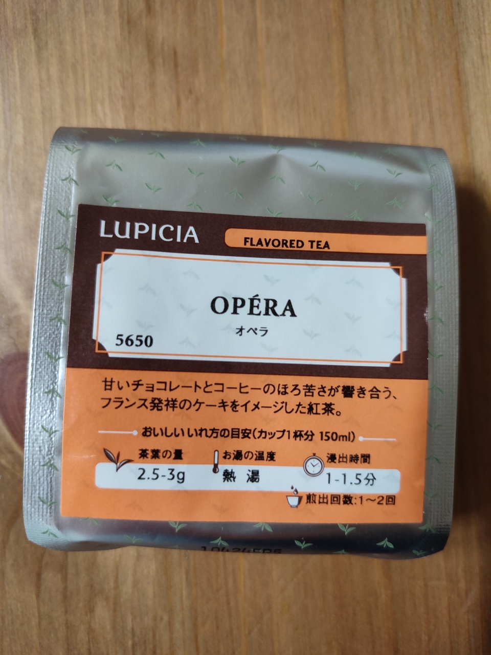 프리지에처럼 그랑 마르쉐 한정이었지만 인기가 좋아서 레귤러 라인업이 된 오페라입니다. 프리지에와 마찬가지로 동명의 케이크가 컨셉인 차입니다. (아쌈앤모카도 인기 좋은데 레귤러 시켜줘라...)