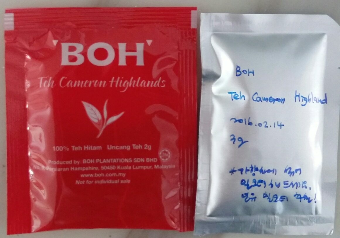 말레이시아 티 브랜드 보ㅎ의 가장 기본 차인 카메론 하이랜드입니다. 카메론 하이랜드 지역 다원의 찻잎을 모은 블렌디드라고 보면 됩니다. 이것보다 조금 더 고가인 다원 시리즈도 있습니다.