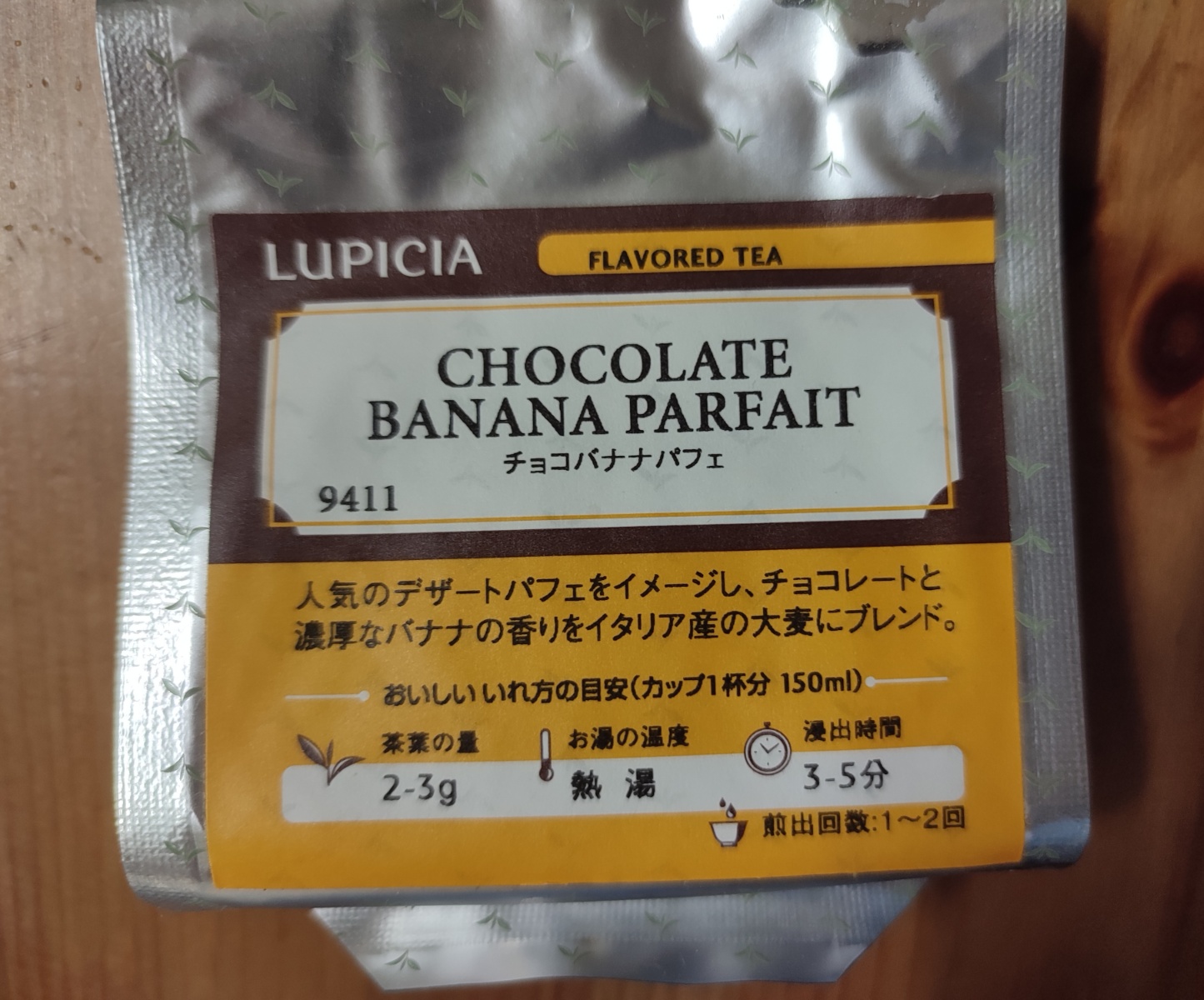 루피시아 그랑 마르셰 한정 초콜릿 바나나 파르페입니다. 오르조(Orzo) 베이스 제품입니다. 최근 루피시아에선 오르조 제품은 무조건 티백 타입으로만 내서 그런지 2022년 그랑 마르셰 한정엔 티백 타입으로 나왔더라고요.