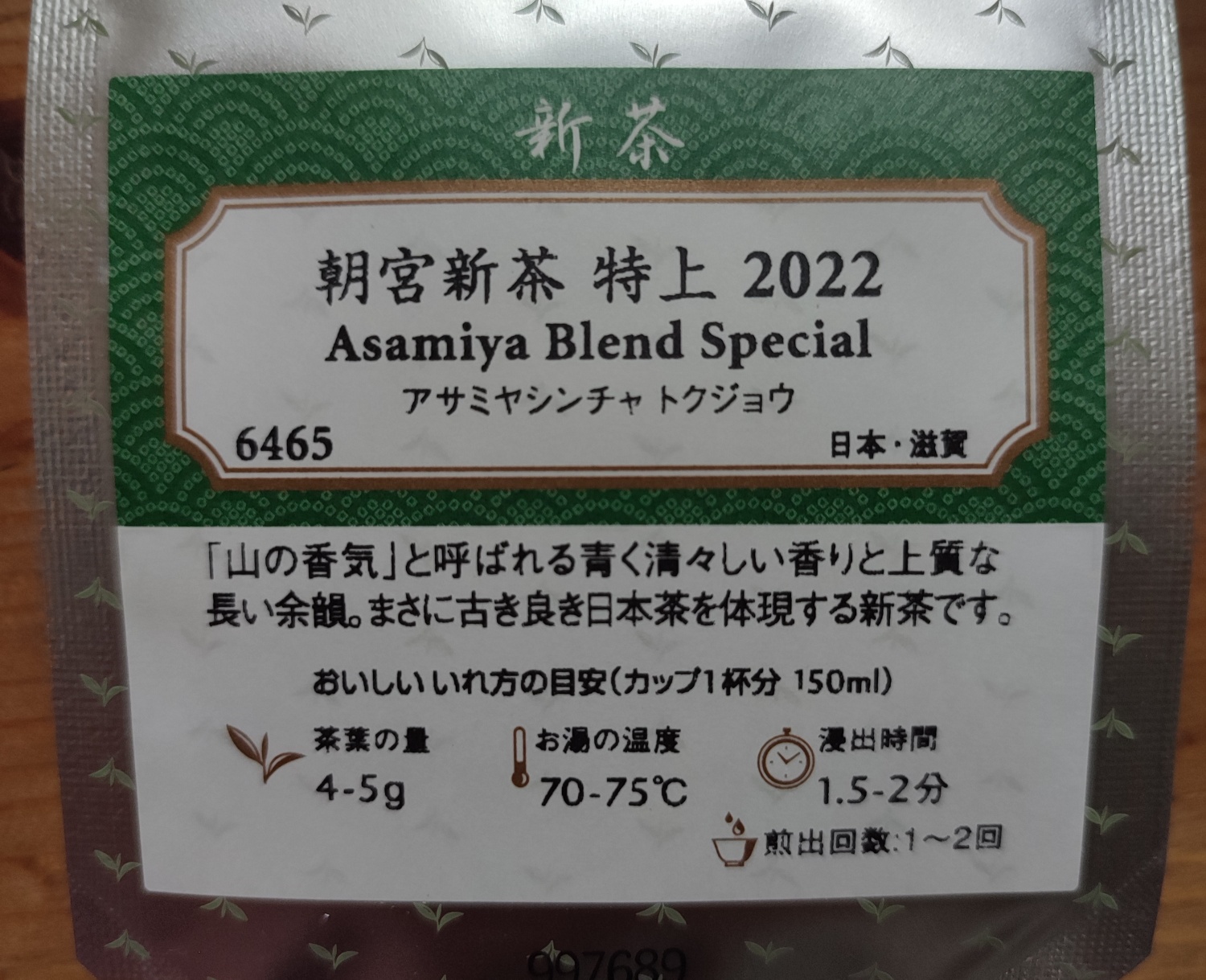 일본 시가(滋賀) 산, 아사미야 신차 특상 2022(朝宮新茶 特上 2022)입니다.