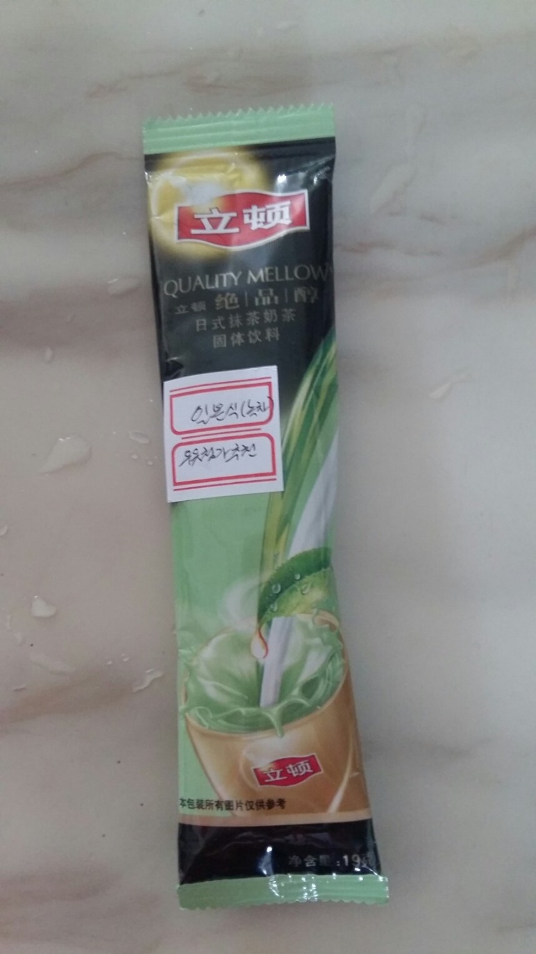 중국 립톤에서 나오는 일본식 말차 밀크티입니다. 대만 립톤은 영어 표기가 같이 있던데 대륙 립톤엔 그런 게 없어서 번역기의 도움을 좀 받았습니다.