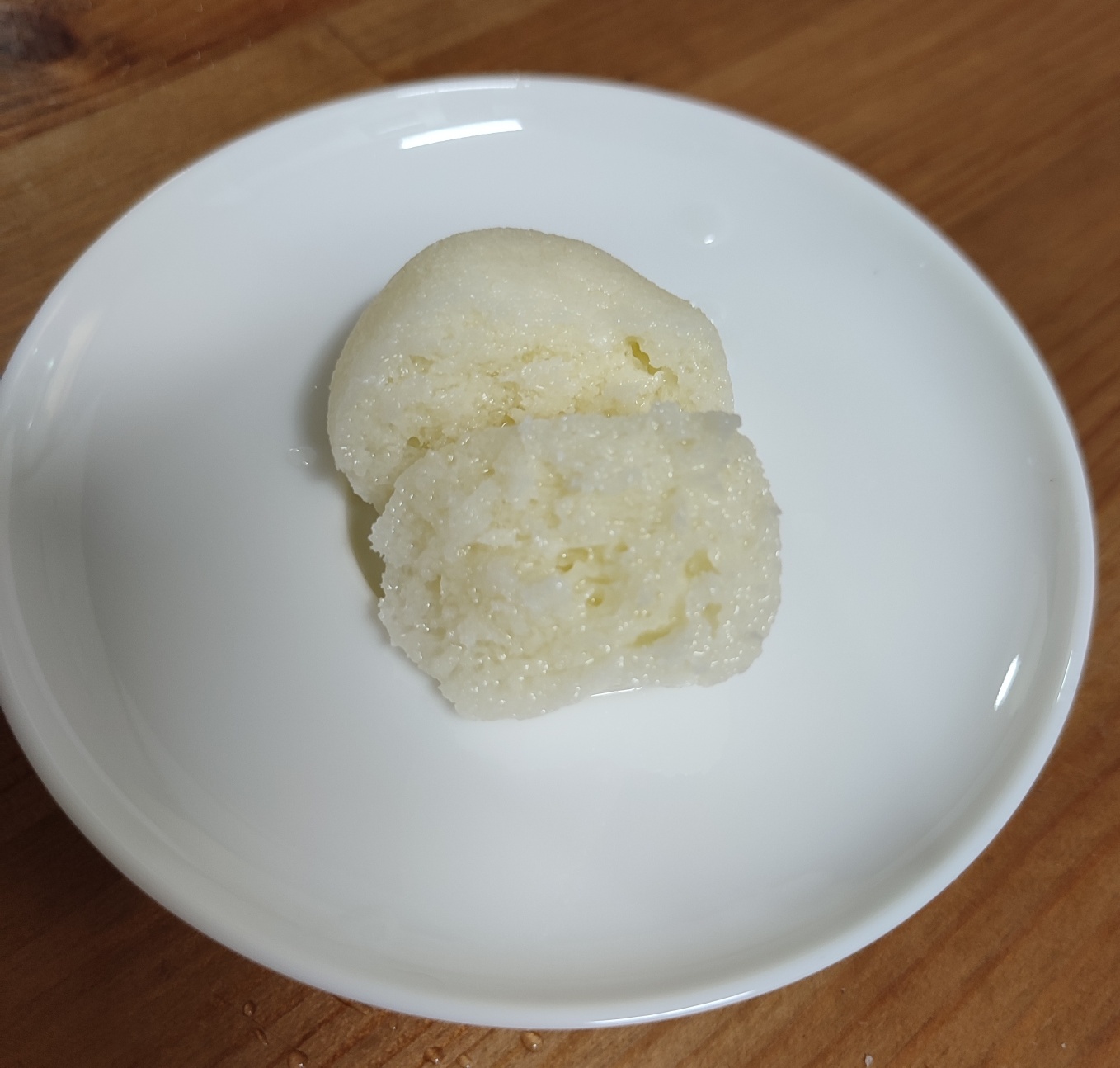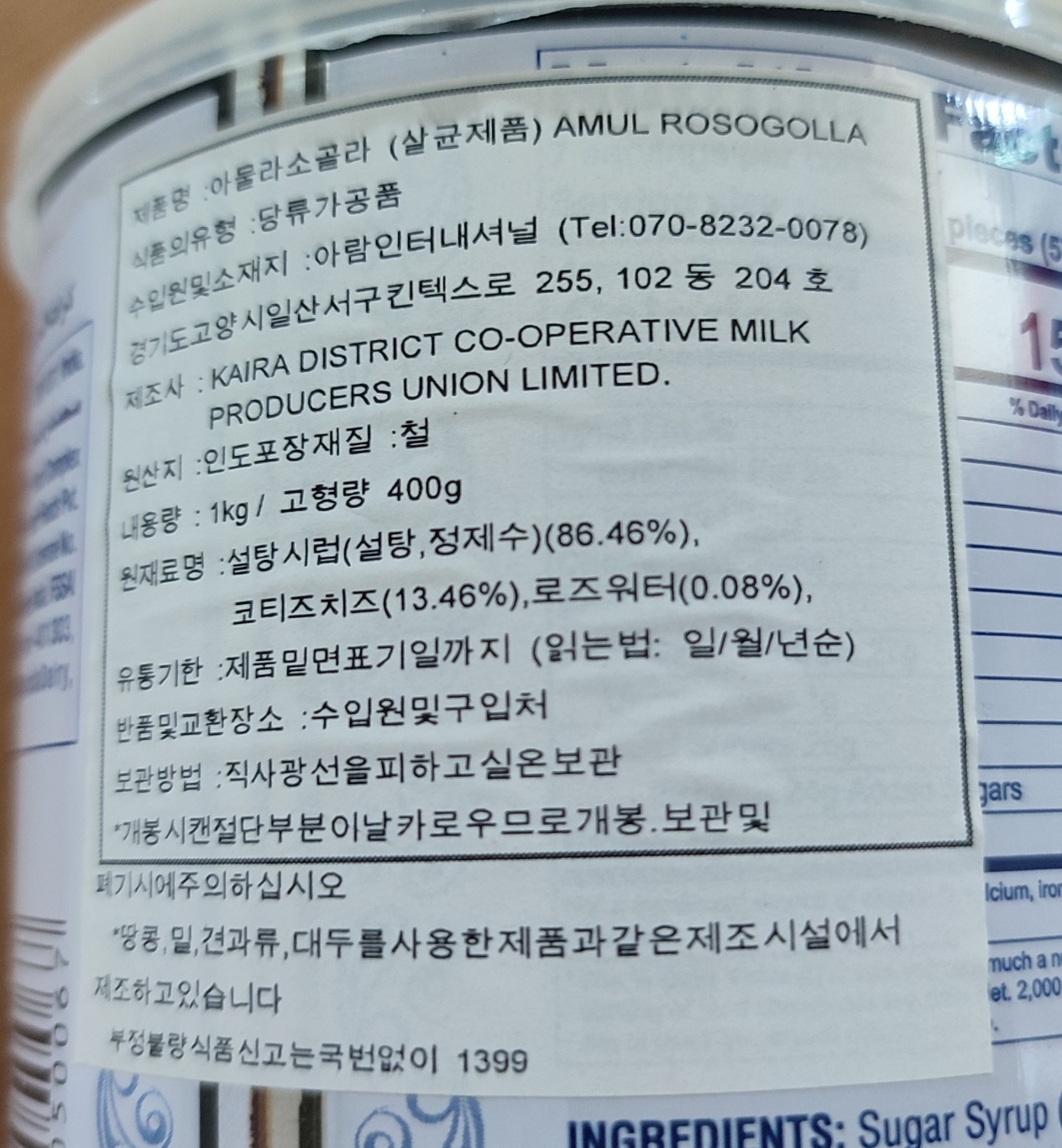 제품을 개봉하면 이렇게 생긴 녀석이 나옵니다. 시럽의 당도가 너무 높기 때문에 삼투압 현상으로 인해 치즈볼이 다 쪼그라들어 있습니다. 캔에서 갓 꺼낸 당절임(...) 라스굴라는 특유의 스펀지 같은 식감이 전혀 없습니다. 이대로 먹으면 상상을 초월할 정도로 달고 식감도 제대로 나오지 않아서 맛이 없습니다. 굳이 설명하자면 질깃거리고 푸석한 건조한 코티지 볼 사이사이 속이 쓰릴 정도로 단 설탕시럽이 스민 맛입니다. 유청을 극한으로 짜내서 푸석푸석해 치즈맛 + 극한의 단맛 + 우유 냄새가 짙은 치즈향이 납니다. 다만 양유나 염소유 계열의 냄새는 아니라 향에서 오는 거부감은 크게 없습니다. 소젖으로 만든 코티지 치즈 느낌으로, 풀 먹인 소에서 짠 우유 같은 느낌입니다.