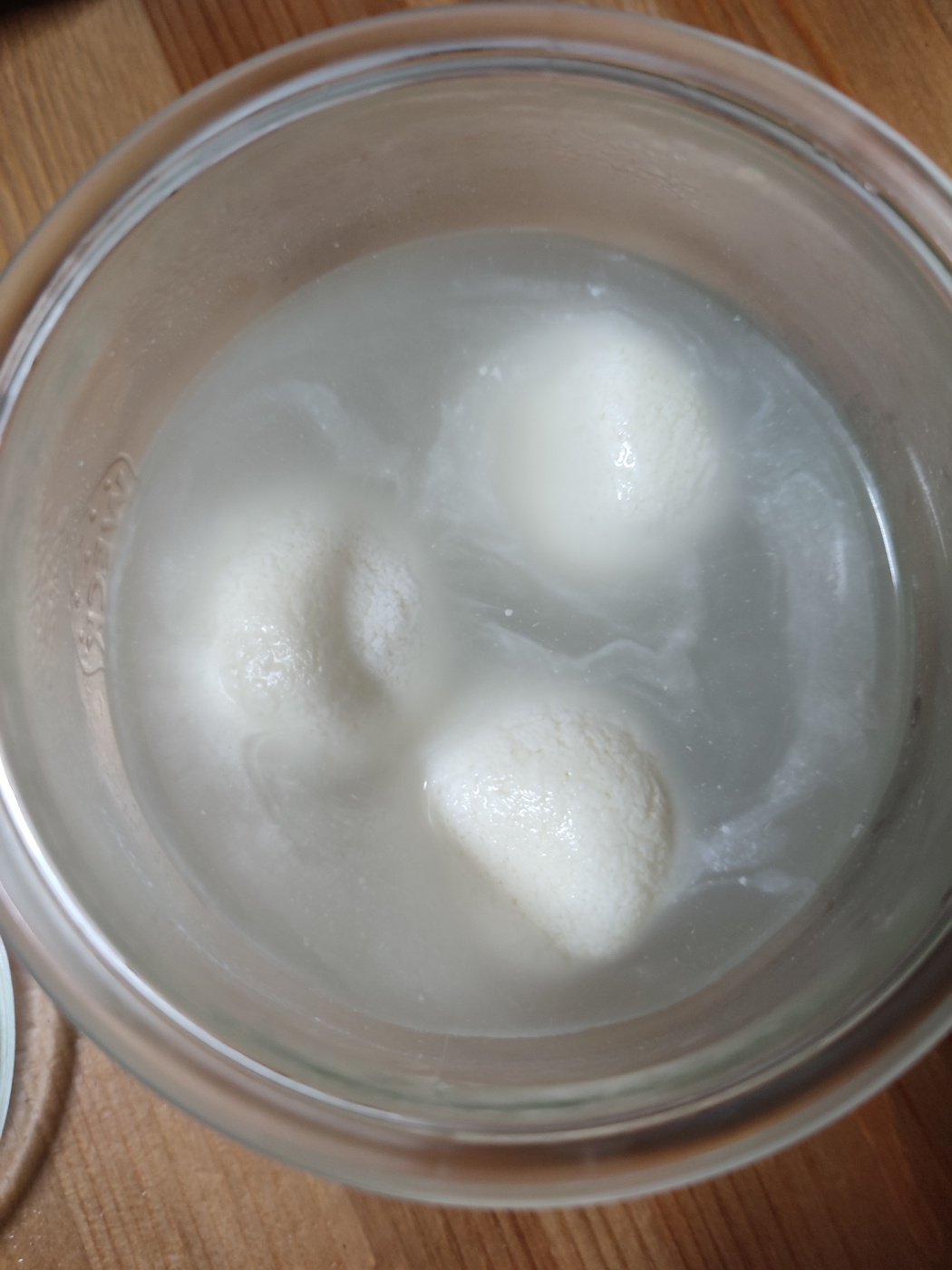 인도 디저트 라스굴라입니다. 라스굴라는 물기를 제거한 코티지치즈를 체에 내려서 커드 입자를 매우 곱게 만든 뒤, 커드 입자들을 동그랗게 공 모양으로 뭉쳐서 설탕시럽에 넣고 끓인 디저트입니다. 자매품으로 굴랍자문이라는 녀석도 있는데 이 놈은 치즈볼을 한번 튀기는 과정이 들어갑니다.