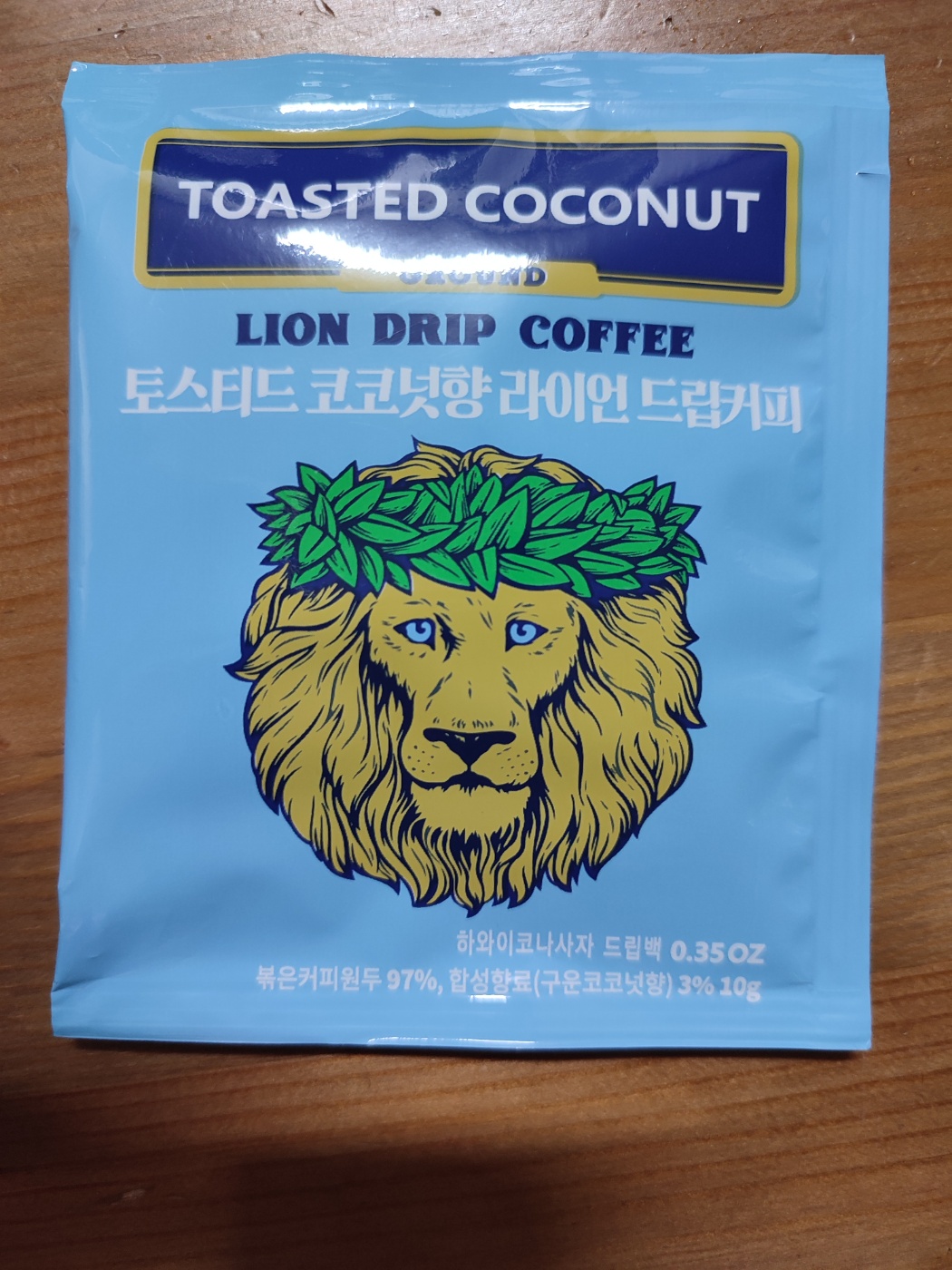 라이언 커피치곤 가향이 좀 약한 것 같습니다. 뚜렷하게 코코넛이란 느낌보단 꼬소하고 느끼한 냄새가 납니다. 내리고 난 뒤엔 약간 달짝한 넛츠향에 느끼한 냄새가 더해진 걸로 느껴집니다. 좋게 말하자면 바닐라 마카다미아에 코코넛 크림을 넣은 듯한 향이고, 나쁘게 말하자면 보관 실수로 고소함 없이 느끼함만 남은 코코넛 가루를 물 없이 한 입에 털어 넣었을 때 느낄 수 있을 것 같은 향입니다. 맛은 바닐라 마카다미아와 거의 비슷합니다. 둘 다 고소하고 달콤한 계열의 넛츠 가향이라 그런지 바탕이 비슷하게 느껴집니다. 바닐라 마카다미아를 맛있게 마셨고 느끼한 향을 좋아한다면 만족할만한 맛이지만 좀 더 임팩트 있는 코코넛을 기대했다면 실망할 수도 있습니다.