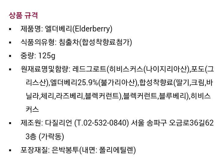 어쨌든, 더위에 찌들어 과일냉침차를 찾던 중 티브리즈의 레드 엘더베리라는 차를 꺼냈는데 다질리언의 엘더베리와 이름도 비슷한 게 향도 비슷하더라고요. 그래서 블렌딩을 찾아보니 블렌딩도 거의 비슷합니다. 그래서 비교 시음기를 써봤습니다. 급랭으로 마셨고, 차의 양, 온도, 물의 양, 시간, 얼음 개수는 똑같이 맞췄습니다. (5g, 100도, 5분, 180ml, 얼음 6개) 참고로 건엽 사진이랑 수색 비교 사진을 안 찍었는데 다질리언에 히비스커스가 좀 더 예쁘게 많이 들어간 것 빼곤 외관도 90% 이상 비슷합니다.