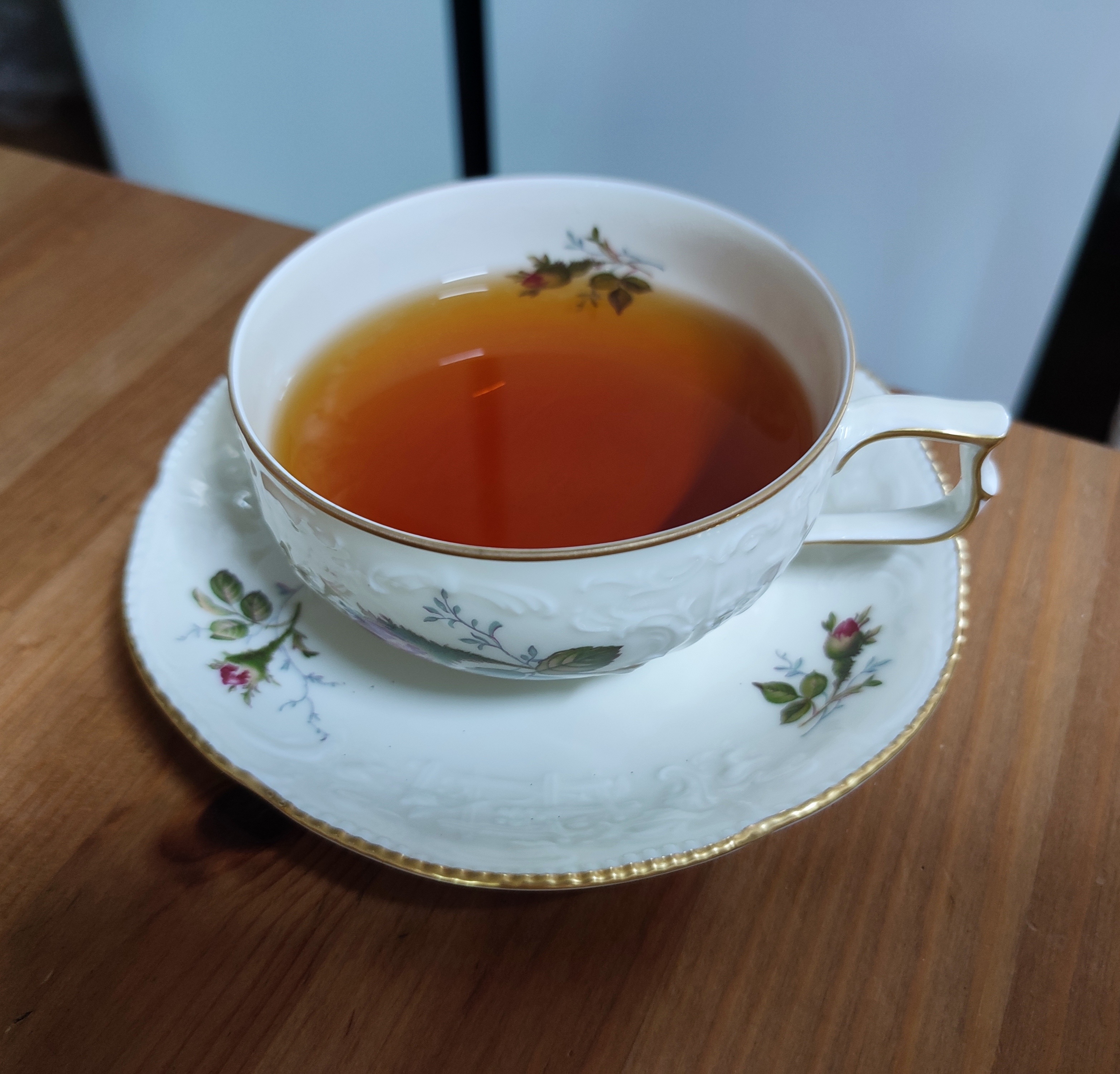 아무튼, 마른 티백에서는 마른 장미향과 초코바닐라같은 달달하고 부드러우면서도 살짝 쌉싸래한 향이 올라옵니다. 2TB, 300ml, 2분 30초, 바닐라와 장미향이 납니다. 향이 매우 좋습니다. 차향과 잘 어울리는 가향입니다. 퓨어 블랙티도 티백치곤 괜찮은 편이지만 마른 장미 꽃잎향이 나는 우바라고 하기엔 부족한 편이었는데 가향이 더해지니 마른 장미 꽃다발을 안고 차를 마시는듯한 기분이 듭니다. 장미향과 더불어 달달하고 부드러운 바닐라와 통조림 체리향 같은 과일향도 올라옵니다. 바닐라 체리 아이스크림에 장미를 섞은 듯한 느낌입니다. 새콤한 맛도 살짝 나고 끝부분엔 쌉싸래한 차향이 돋보이면서 초콜릿 같은 진득한 느낌도 아주 약간 있습니다. 맛있어요. 식을수록 산미가 돋보이는 편이지만 수렴성에도 나오는 산미가 아닌 로즈힙에서 나오는 달짝하면서도 기분 좋은 새콤한 맛이 은은하게 올라옵니다.